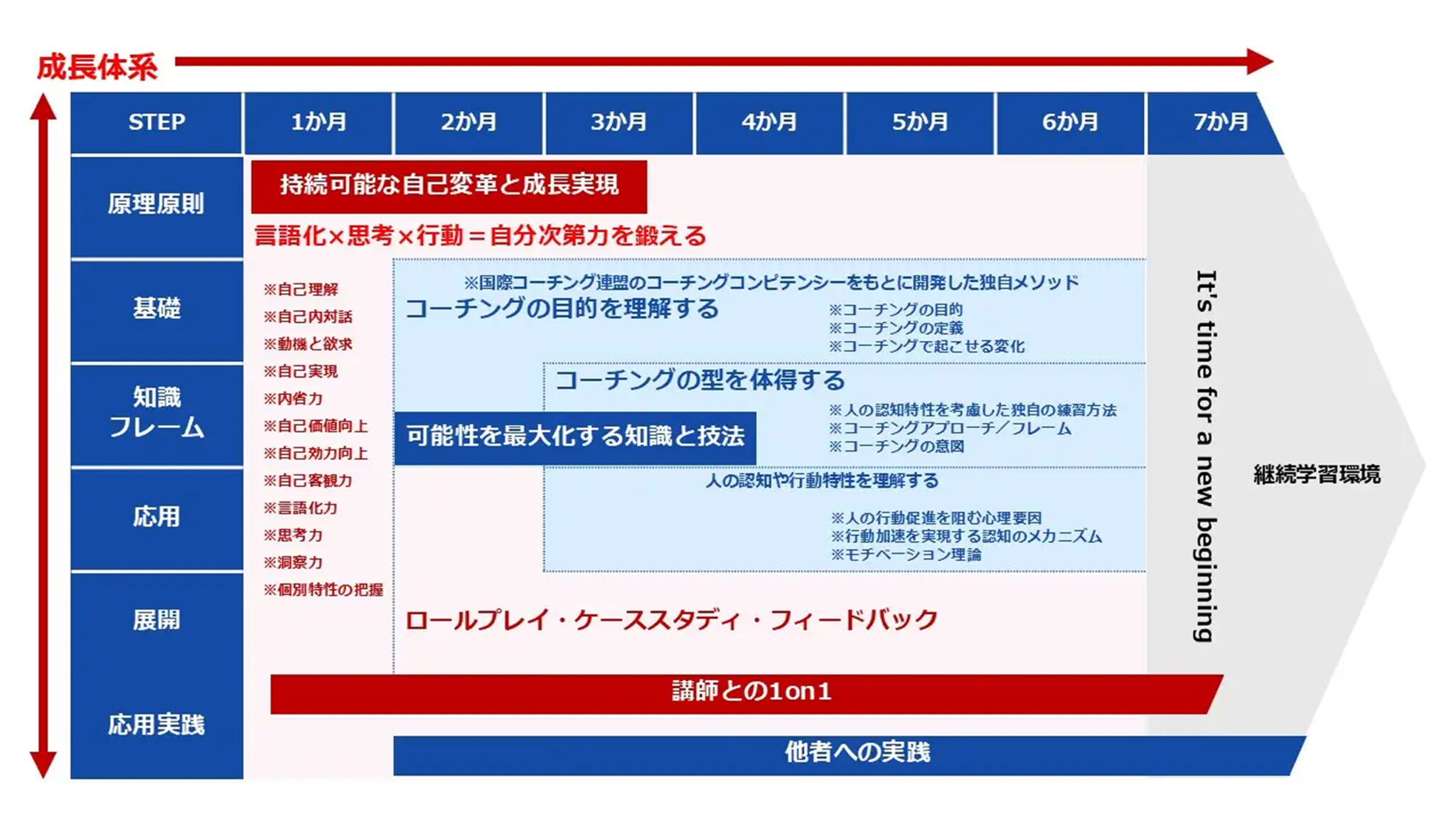 A. ICF Competency Modelの主要5項目で初級〜中級レベルを目指せます。独自コンピテンシー基準による